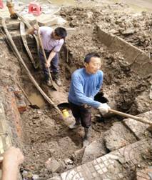 五月一日凌晨三點多鐘,宜城市振興大道聯(lián)通公司門前直徑400mm的鑄鐵管突然爆管。正值五一小長假,為了能在最短的時間內恢復供水,公司領導接到市民報警后,及時組織搶修人員趕赴事發(fā)地點,根據(jù)現(xiàn)場情況,迅速制定搶修方案,組織搶修人員緊急開挖,并同時制作搶修配件。當時宜城正天降大雨,搶修人員的衣服很快就濕透了,雨水與泥土形成的泥漿濺滿了他們全身,路過的市民紛紛投來了敬佩的目光。雖然一身雨一身泥,大家全然不顧,心中只有一個念頭:盡快把管道維修好保證正常供水,讓市民過一個快樂的五一勞動節(jié)。大家齊心協(xié)力,克服一切困難,連續(xù)作戰(zhàn),最終比預計的搶修時間提前了五個小時恢復正常供水。