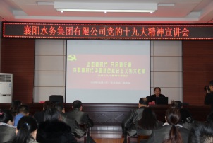 根據(jù)市國(guó)資委黨委的統(tǒng)一安排,12月25日下午,市國(guó)資委黨委委員、副主任鄧世海來(lái)到襄陽(yáng)水務(wù)集團(tuán)有限公司開(kāi)展黨的十九大精神專(zhuān)題宣講。集團(tuán)公司本部全體干部職工、襄陽(yáng)中環(huán)水務(wù)有限公司班子成員及基層黨支部書(shū)記和黨務(wù)工作人員共50余人參加了學(xué)習(xí)。