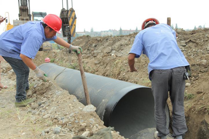8月31日中上午11時(shí)許,天氣陰冷,烏云低垂,一場(chǎng)大雨即將來臨。在內(nèi)環(huán)南路-沿江大道段供水管網(wǎng)施工工地上,卻是一派機(jī)器轟鳴、熱火朝天的施工景象。襄陽中環(huán)水務(wù)供水工程有限公司第五項(xiàng)目部施工員王俊,正和另外5名施工員一起,鋪設(shè)內(nèi)環(huán)南路-沿江大道長(zhǎng)達(dá)3.2公里、直徑1.2米的供水主管網(wǎng),解決余家湖片區(qū)居民家中水壓低的問題。