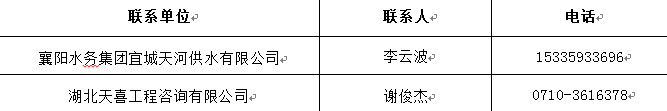 招標(biāo)人:襄陽水務(wù)集團(tuán)宜城天河供水有限公司